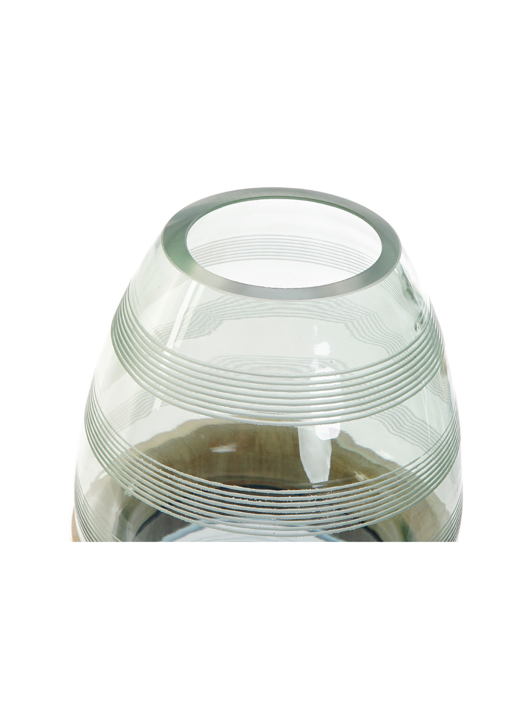 Jarrón de cristal y madera 3 piezas.